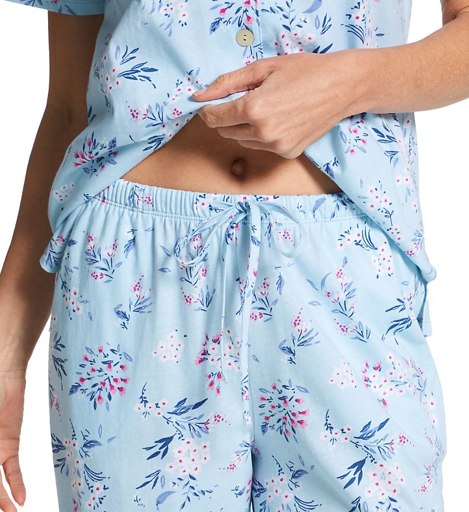 The Carole Hochman 100% Cotton Knit Short Sleeve Notch Collar PJ Set CH92600 includes button down top with short sleeves and pants with adjustable drawstring and side pockets. Carole Hochman's 100% Cotton Knit Short Sleeve Notch Collar PJ Set is made of knit cotton.