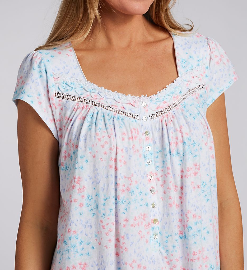 The Eileen West 100% Cotton Jersey Cap Sleeve Long Nightgown 5425053 will give you sweet dreams and comfortable rest with its soft jersey knit and loose styling. Gown has cap sleeves and partial button front. Eileen West's 100% Cotton Jersey Cap Sleeve Long Nightgown is made of pure cotton.