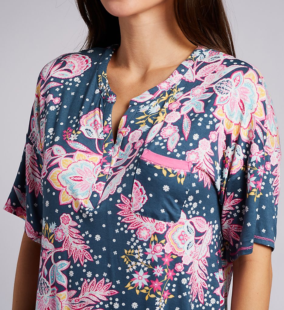 Soft short length pajamas with a pretty multicolor floral print. Made of a knit blend of rayon and spandex.