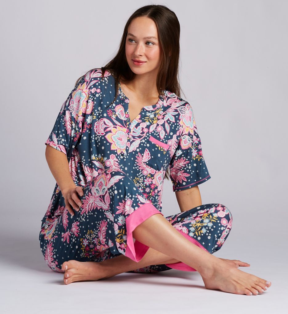 Jersey Elbow Sleeve Cropped Wide Leg Pant PJ Set
