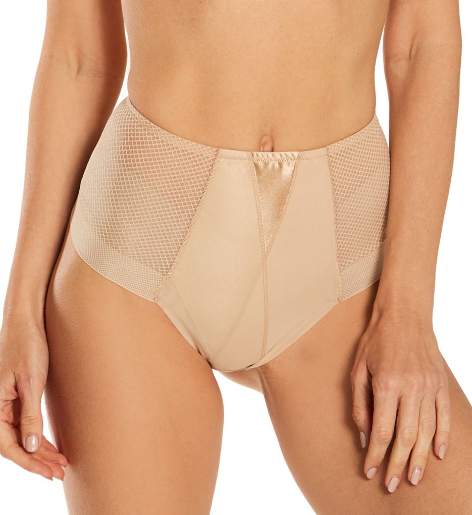 • Sheer mesh sides and back have grid pattern that firms up figure for slim appearance.